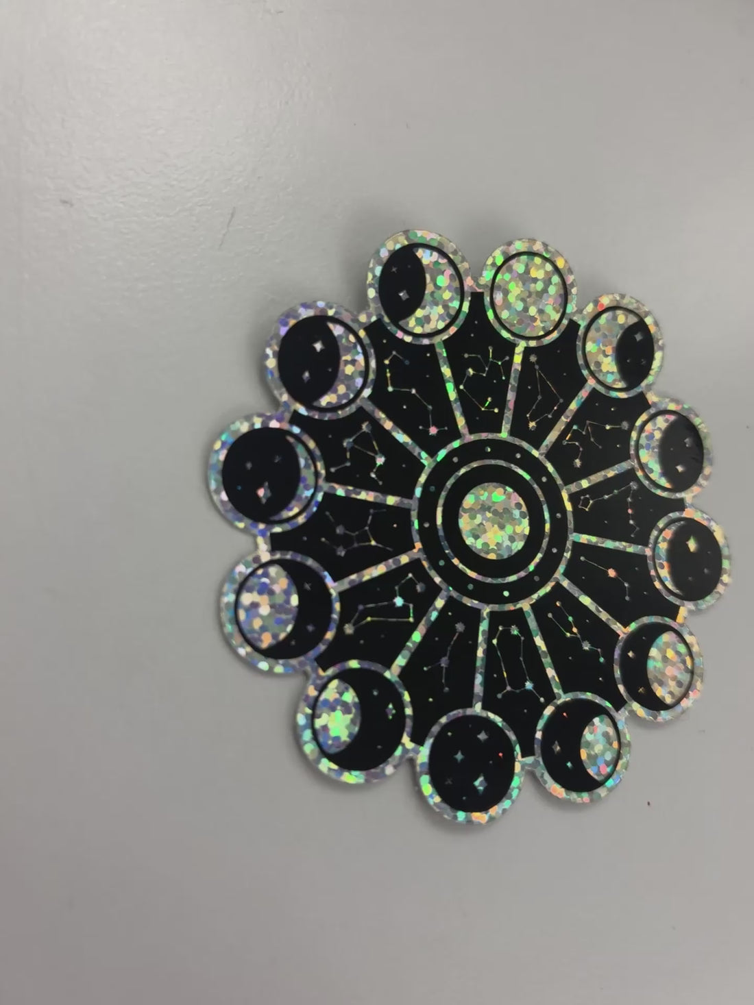 This sticker captures every lunar phase encircling a radiant cosmic core, framed with constellations that shimmer under light. Its iridescent sparkle mirrors the stars themselves — a perfect accent for journals, laptops, or alt...